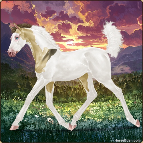 Color: Amber Dun Tobiano Splash White