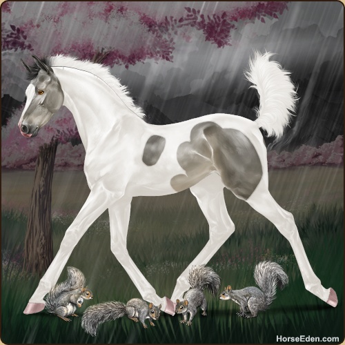 uh... he didn't have those spots as a colt... ummm XD squirrel shenanigans or bend or?? -HEE Click-
