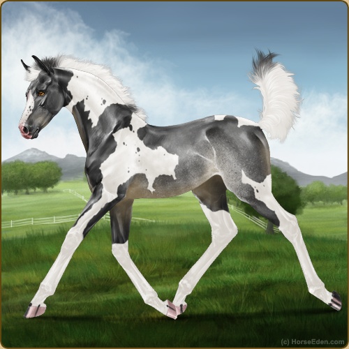 Color: Smokey Black Tobiano Rabicano