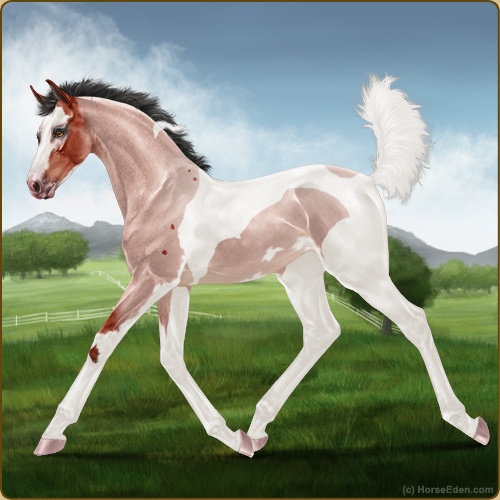 Color: Blood Bay Roan Tobiano Sabino
