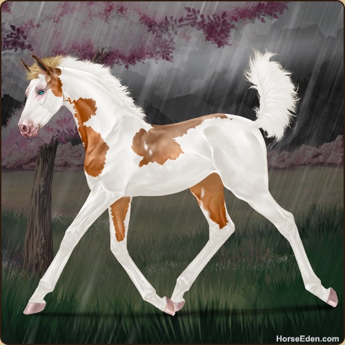 Color: Flaxen Chestnut Tobiano Splash White Sabino