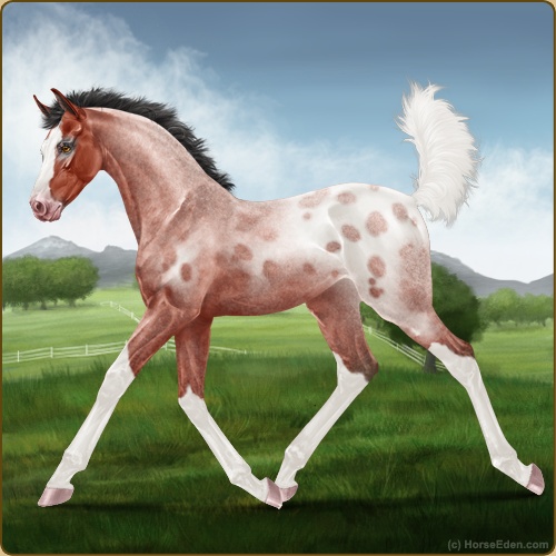 Color: Blood Bay Roan Sabino Blanket Appaloosa