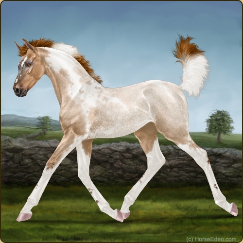 Color: Red Roan Dun Tobiano Rabicano