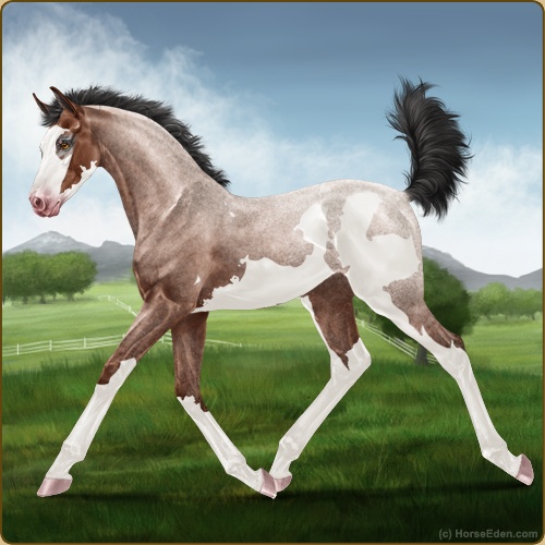 Color: Mahogany Bay Roan Sabino Frame Varnish Frost Appaloosa
