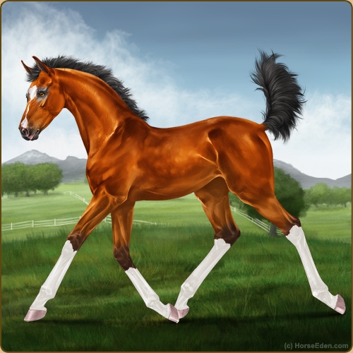 | This is my second EEE after coming back, a descendant of my main sire from when I used to play, so happy hes golden bay but I thought he was wild and got so happy at first -HEE Click- Wild bay is SO pretty |