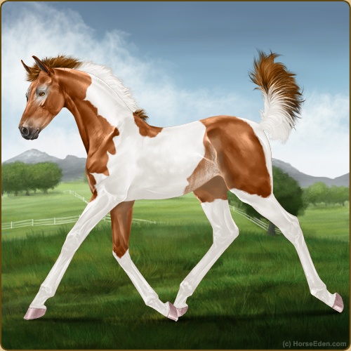 Color: Chestnut Tobiano Rabicano