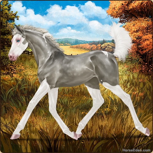 Color: Silver Grullo Tobiano Splash White