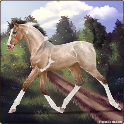 Color: Light Bay Roan Dun Tobiano
