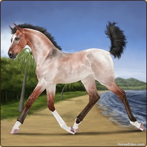 Color: Blood Bay Roan Dun