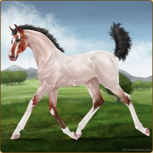 Color: Blood Bay Roan Sabino