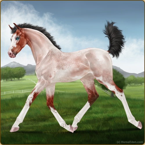 Color: Blood Bay Roan Splash White
