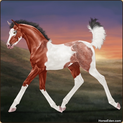 Color: Blood Bay Tobiano Sabino Frost Appaloosa