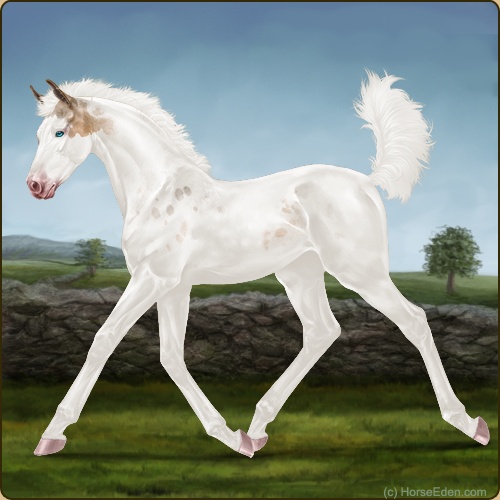 Color: Flaxen Red Roan Dun Tobiano Splash White Sabino Varnish Near Leopard Appaloosa