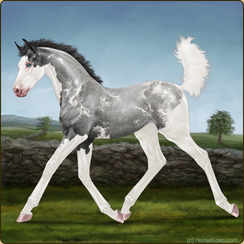Color: Smokey Blue Roan Splash White Sabino