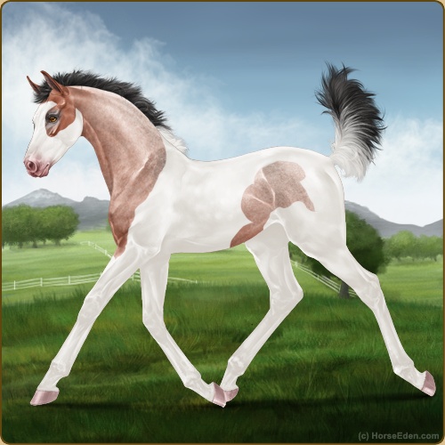 Color: Blood Bay Roan Dun Tobiano Splash White