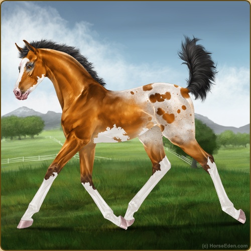Color: Golden Bay Sabino Varnish Blanket Appaloosa