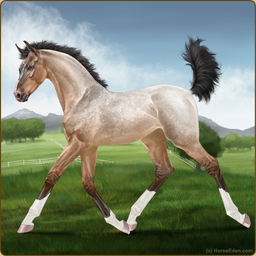 Color: Light Bay Roan Dun Varnish Frost Appaloosa