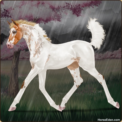Color: Flaxen Red Roan Splash White Near Fewspot Appaloosa
