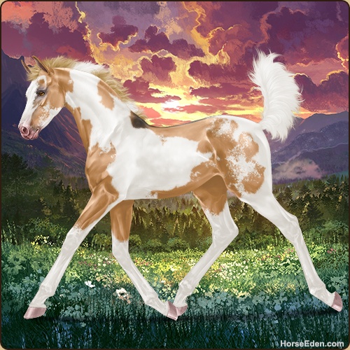 Color: Flaxen Red Dun Tobiano Sabino