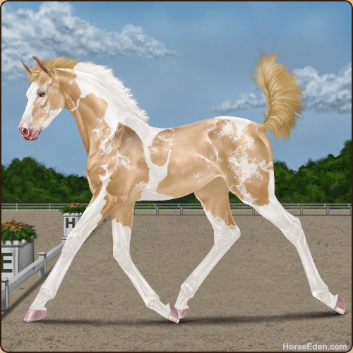 Color: Flaxen Red Dun Tobiano Splash White Sabino