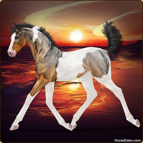 Color: Golden Bay Roan Tobiano Sabino Brindle