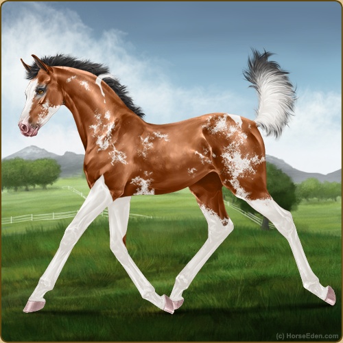 Color: Light Bay Tobiano Sabino Brindle