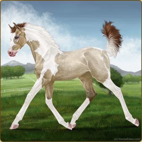 Color: Dark Red Roan Dun Tobiano Sabino