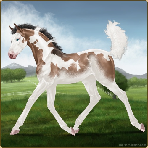 Color: Mahogany Bay Dun Tobiano Splash White Sabino