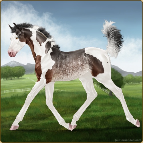 Color: Mahogany Bay Tobiano Splash White Rabicano