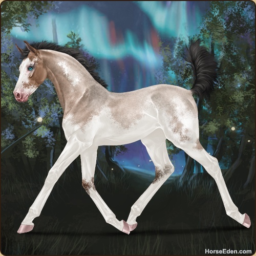 Color: Mahogany Bay Roan Dun Splash White Sabino
