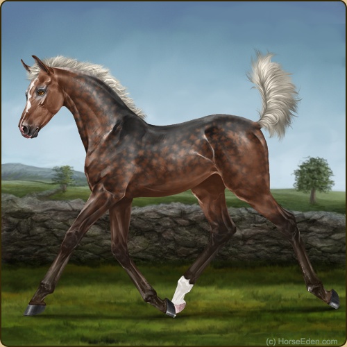 This is my second EEE after coming back, a descendant of my main sire from when I used to play, so happy hes golden bay but I thought he was wild and got so happy at first -HEE Click- Wild bay is SO pretty