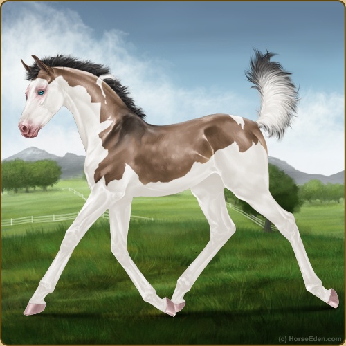 Color: Brown Dun Tobiano Splash White