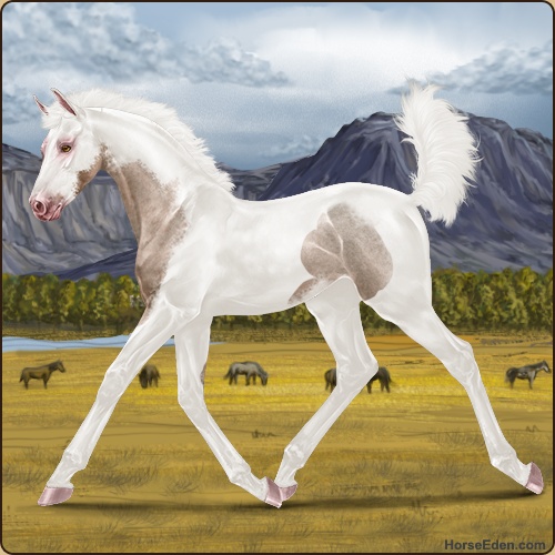 Color: Silver Mahogany Bay Roan Dun Tobiano Sabino