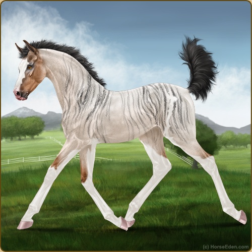 Color: Light Bay Roan Dun Sabino Brindle