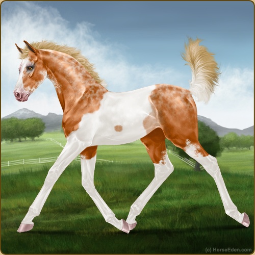 Color: Flaxen Chestnut Tobiano Splash White Sabino Rabicano
