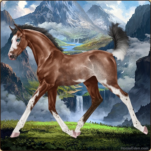 Color: Mahogany Bay Splash White Rabicano