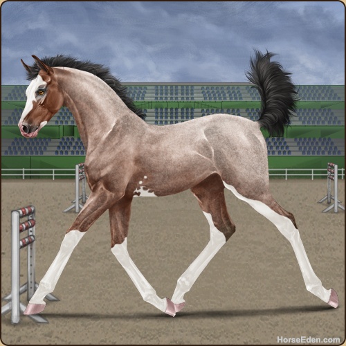 Color: Mahogany Bay Roan SabinoHorse Nbr: 44097176Breed: Sport HorseSex: ColtBirthdate: April 3, 2026Age: 1Birth Year: 201Straws Drawn: 0Height: 10.2 Hands