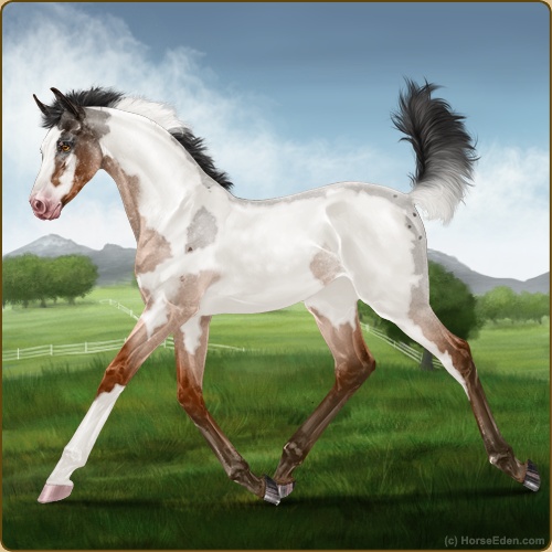 Color: Light Bay Roan Rabicano Frame Varnish Snowflake Appaloosa