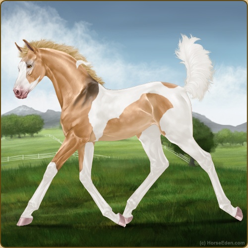 Color: Flaxen Red Dun Tobiano Splash White