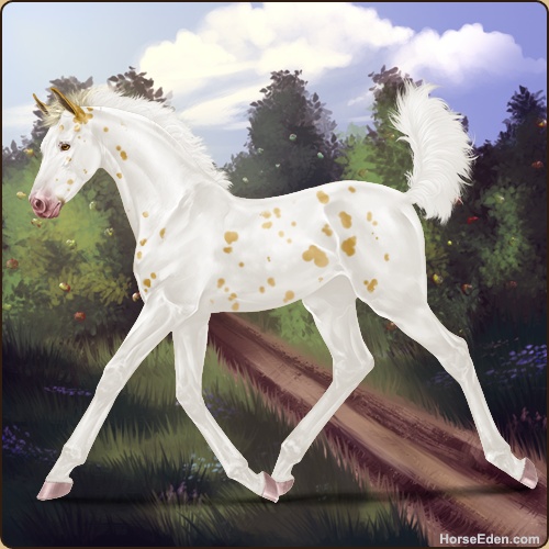 No GP, no A+... but dappled dunalino with a new splash coat that has a white tail. :D