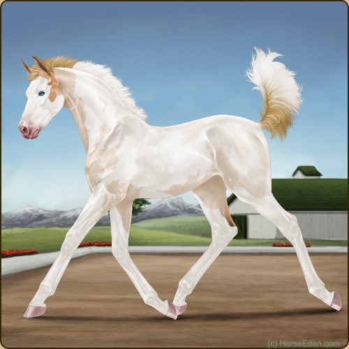 No GP, no A+... but dappled dunalino with a new splash coat that has a white tail. :D