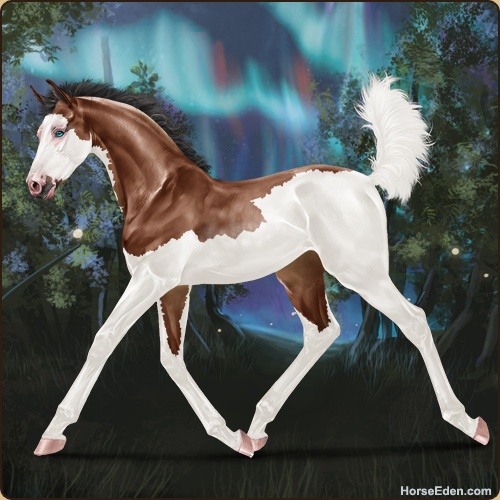 Color: Mahogany Bay Splash White Rabicano