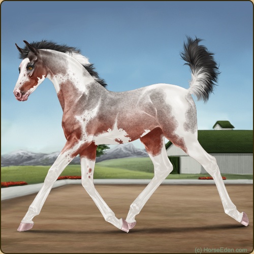 Color: Blood Bay Roan Tobiano Sabino
