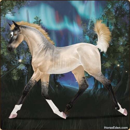 Color: Flaxen Red Roan Dun Rabicano