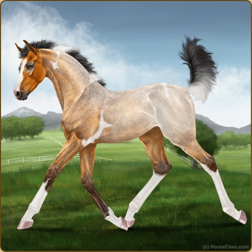 Color: Golden Bay Roan Tobiano Rabicano