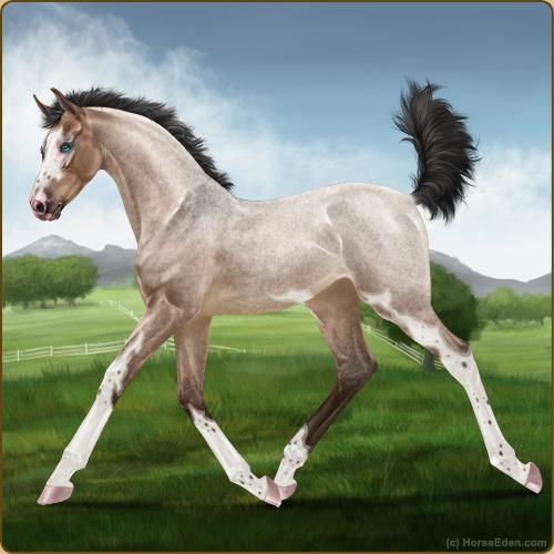 Color: Mahogany Bay Roan Dun Splash WhiteHorse Nbr: 44118272Breed: Irish Sport HorseSex: ColtBirthdate: April 4, 2026Age: 1Birth Year: 201Straws Drawn: 0Height: 10.0 Hands