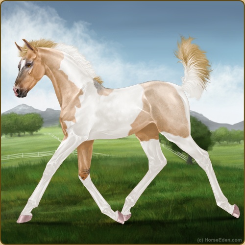 Color: Flaxen Red Roan Dun Tobiano