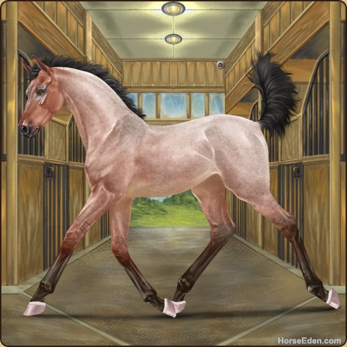 Color: Blood Bay Roan Dun