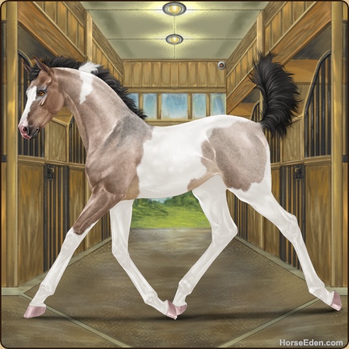 Color: Mahogany Bay Roan Dun Tobiano