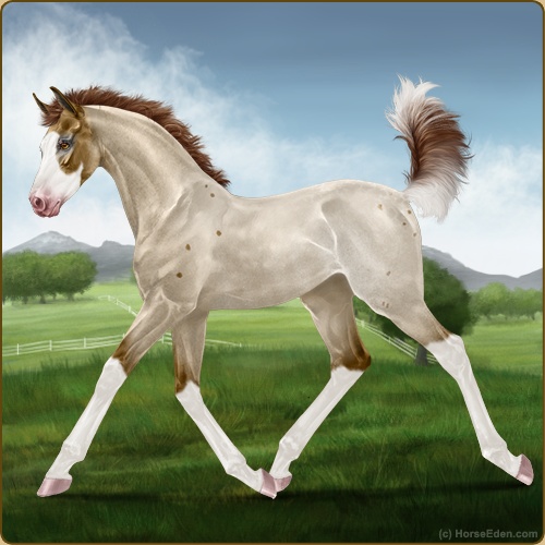 Color: Dark Red Roan Splash White Rabicano Appaloosa